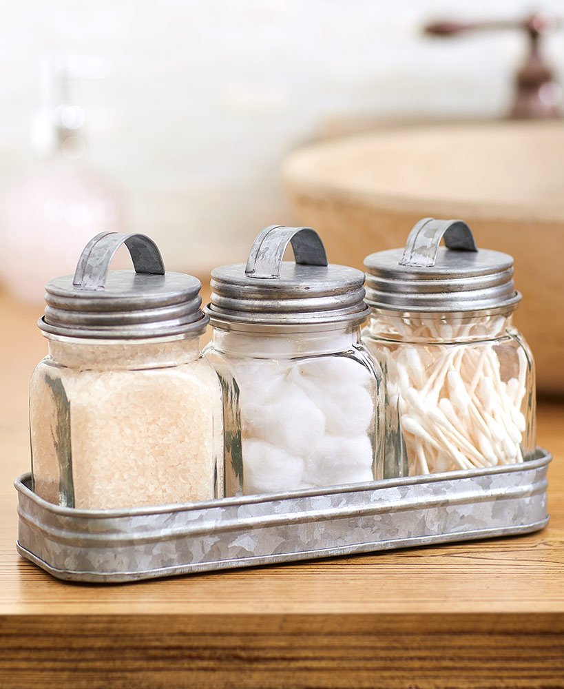 Canisters, 3″ sq. x 5-3/8″H, each Tray, 9-7/8″W x 3-3/4″D x 1-3/8″H